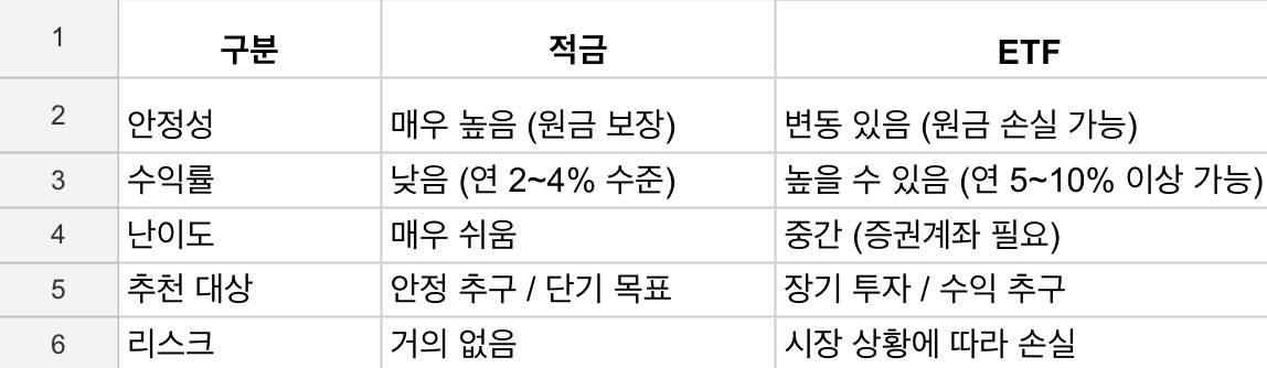 ✅ 적금 vs ETF 핵심 차이 한눈 정리